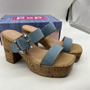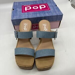 Pop Womens Sharice Heeled Sandals Denim Light Blue Size 8.5