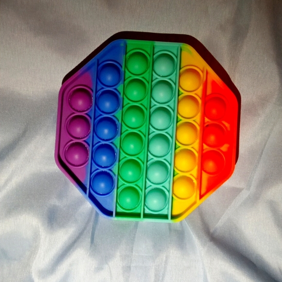 it's a pop it and the colors is orange,yellow,mint,green,dark blue,purple and It does not break easily
