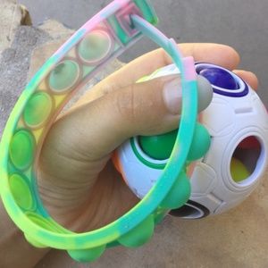 The pop it ball is fun and challenging, and has cute colors. The pop it bracelet cute and can fit anyone.