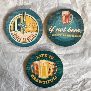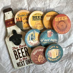 Pop-A-Tops: wooden coasters with a bottle opener on the bottom. Approx 3.75" diameter.