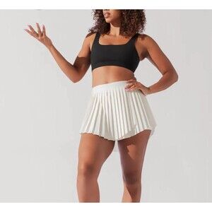 PopFlex Exquisite Skort Womens Large Ivory Pleated Tennis High Waist Pockets