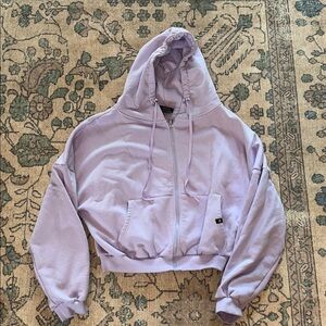 PopFlex lavender cloud hoodie zip up, cropped, oversized through body, adjustable hood, thick French terry. EUC worn only a few times. Size small/medium.