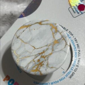 Stylish PopSocket with gold marble design. Provides secure grip and stand functionality. Perfect for enhancing your phone's look.