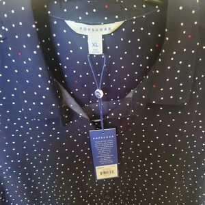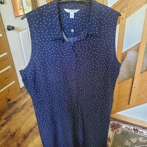 PopSugar Sleeveless Blue with Red & White Dots Full Button Sz. XL Dress