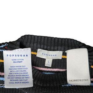 PopSugar Striped Sweater. Size Large. Measurements in photos. Has a small amount of paint on one of the sleeves. Please see last photo. Otherwise well-loved and in overall great condition. Some mild washwear/piling.