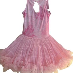 Adorable Popatu tutu dress for your little princess! Pink tie-dye tank style top with rhinestone butterfly design and a satin bow at the waist. Full layered tutu skirt with sparkly details – perfect for birthdays, dance, dress-up, or special occasions.