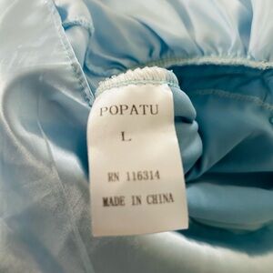 Shimmering turquoise sequin dress by Popatu. Layered tulle skirt with bow accent. Perfect for dance, parties and dress-up! Dress is a size L in girls or a 6, see included sizing chart. Fits 4-6 year olds well. Dress is in excellent condition!