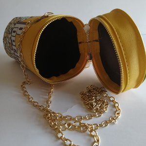 Mini popcorn bucket design chain crossbody bag. 4.3in/11cm across 7.1in/18cm down