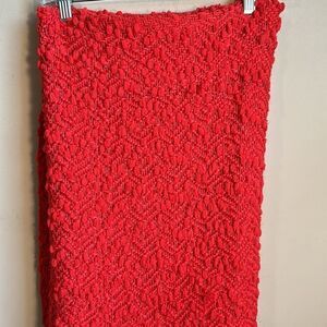Red throw with fringe and texture in VGUC. Has been dry cleaned.