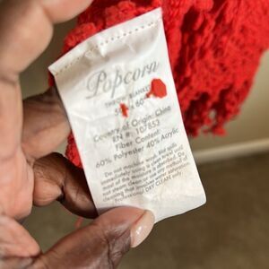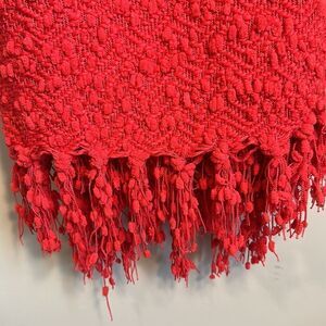 Red throw with fringe and texture in VGUC. Has been dry cleaned.
