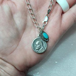 Pope Joannes Paulus II Pontifex Maximus and Turquoise sterling charm bracelet