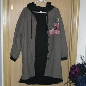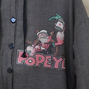 Popeye Graphic Sherpa Lined Button Front long Hoodie