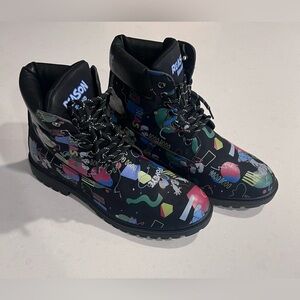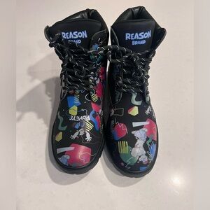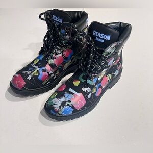 Popeye X Reason Collab Faux Suede Graffiti Print Boots Black Mens 10 New