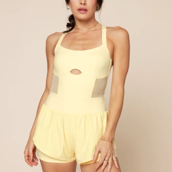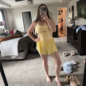 Stylish yellow romper with a chic cutout design. Perfect for casual outings.