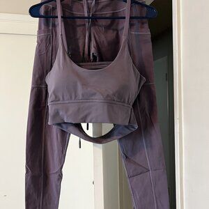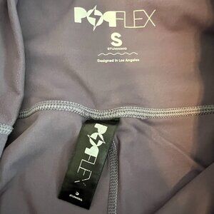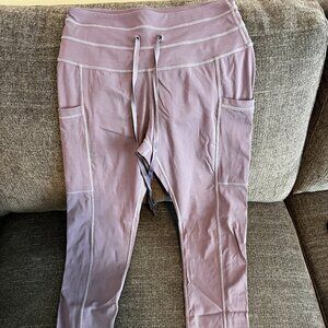 Popflex cargo drawstring leggings in cool plum, size SMALL, excellent condition. High-waisted, 7/8 length, StretchSilk fabric.