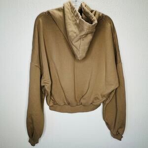 Popflex Tan Taupe Kangaroo Pocket Drop Shoulder Crop Pullover Hoodie S/M