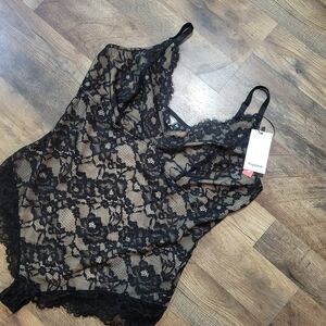 NWT Popilush Black Lace V Neck Shapewear Tummy Control Bodysuit Size 3XL