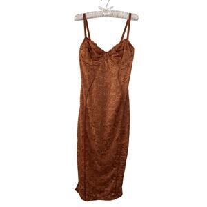 Popilush Brown Bodycon Dress Stretch Lace Floral Sweetheart Spaghetti Sz Medium