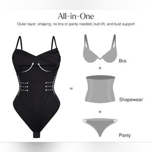 •Built-in steel bones and side panels provide braless support that lifts and shapes, ensuring all day comfort.