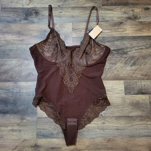 NWT Popilush Dark Brown Corset V Neck Lace Shapewear Tummy Control Bodysuit Size XXL