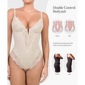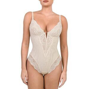 Popilush Lace Shapewear Bodysuit Thong Tummy Control Backless Cream 3XL NWT