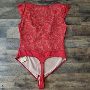 NWT Popilush Red Lace Cap Sleeve Shapewear Tummy Control Going Out Top Bodysuit Size XXL