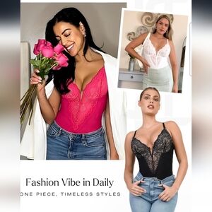 NWT Popilush V-Neck Lace Corset Shapewear Bodysuit With Tummy Control Size 3XL