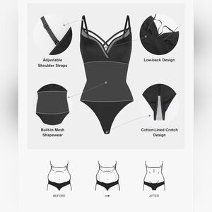 •This built in shapewear bodysuit provides ample shaping effects, effortlessly sculpting the perfect hourglass figure in one step, while maintaining comfort and style.