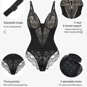 Popilush Women's Shapewear Lace Deep V-Neck Sculpting Thong Bodysuit Size XL