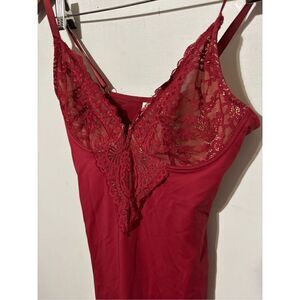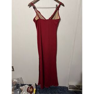 Popilush Women’s Small Red Sleeveless Lace Detail Maxi Dress Gown Leg Slit