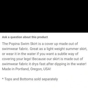 Popina Retro Swim Skirt Swim Cover Size XL Black Bottom Modest Resort Wear
