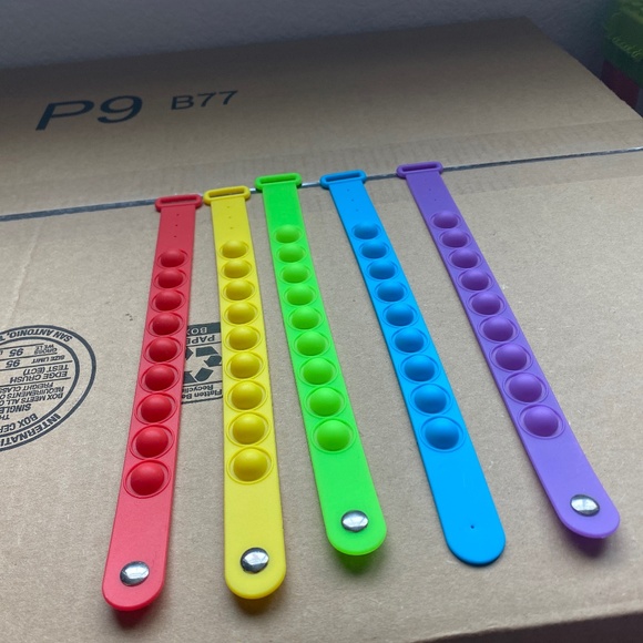 Five solid color pop-it bracelets.