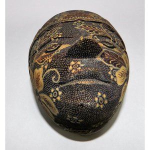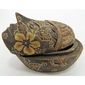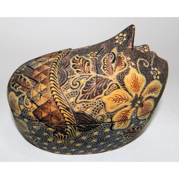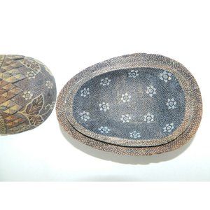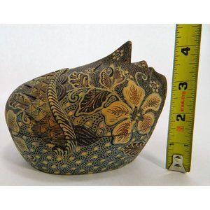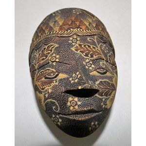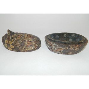 Poplier Batik Fabric Wood Mask Trinket Box Container Indonesian Eclectic