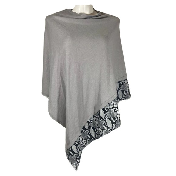 Popover Shawl One Size Gray Animal Print Trim Stretch Convertible KAT + Bryn