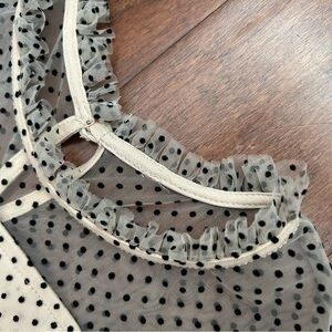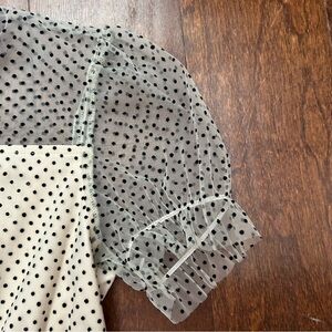 Poppies and Roses Velvet Polka Dot on Beige Netting Kids Dress, Size Large