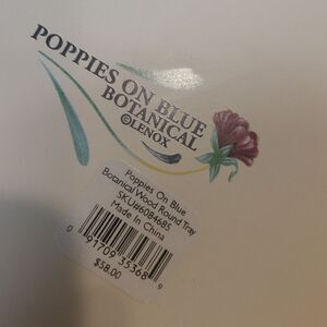 New ivory wood serving platter or decor item. Pattern is Lenox Poppies on blue.