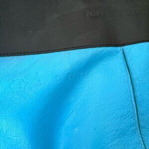 Black leather with blue leather interior. Comes with Poppy Barley dust bag.
