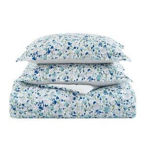 A freeform painterly floral updates bohemian styling with a contemporary flair. The fresh palette of watery cobalt blues and turquoise on a crisp white ground evokes relaxed days at the shore. The Olivia ensemble will look great with solid color sheets by Poppy & Fritz. Reverse features a thin stripe design in green and white. 100% Cotton with a 180 Thread count. Duvet cover and Shams feature a zipper closure. Machine washable for easy care.