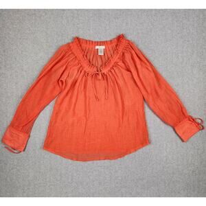 Poppy Garden Ladies Blouse Size Small Silk Blend Tie Front Orange