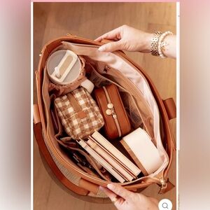 👜🌸Poppy & Peonies Cognac Multitasker Tote! 16" Laptop, Stanley tons of pockets