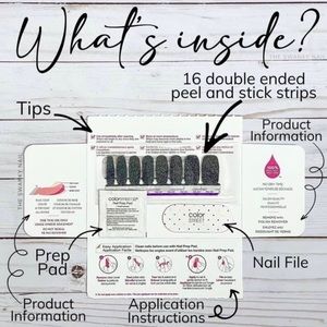 Notes: Nail strips are super easy to apply! Goes on like a sticker, but is real polish. Easily remove with nail polish remover.