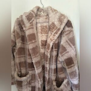 Poppy & Whimsey plus size mauve plaid fleece open hooded jacket pockets size 1x