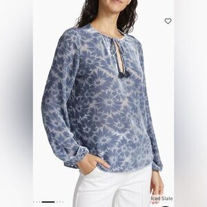NWOT Paige Selmah Floral Burnout Long-Sleeve Blouse in Iced Slate Size XS