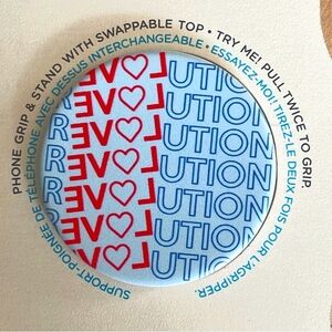 •It’s a smartphone/cell phone holder/grip and stand with a removable, swappable top.