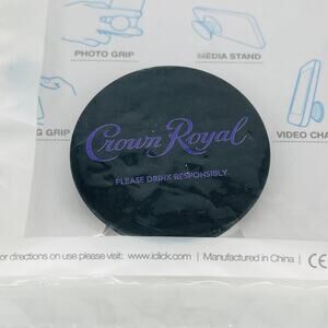 Brand New black PopSockets phone grip / stand with Crown Royal logo and *Please Drink Responsibly* in blue-ish/purple-ish color - still in packaging/unopened/unused