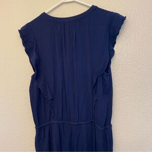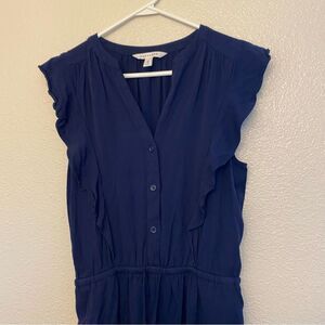 Popsugar navy blue button front tie waist wide Leg Romper Jumpsuit 100% rayon S