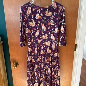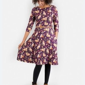 Purple fox dress with pockets, boat neck and comfy jersey material.