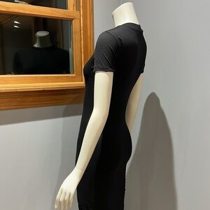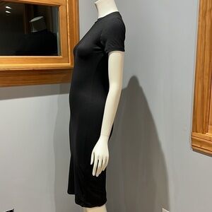Black dress by Popular 21. Fitted short sleeve crewneck dress. Below the knee midi length. Excellent used condition.
