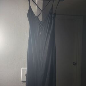 Stylish midi length body con dress . Ideal for versatile wear. Criss cross straps on the back, deep V criss cross cut out in the front. Double lining inside for extra protection from the never ok "peep show"! Perfect for a night out with your significant other or for your next wedding guest attendance! Dress up or dress down! Style with an elegant pair of heels or a cute pair of sandals!