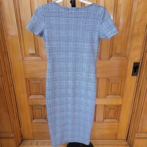 Popular Basics Gray Plaid Bodycon Short-Sleeve Dress M Gingham-Inspired Preppy school